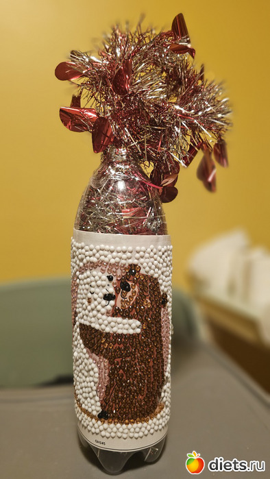 Еще садик написал, что надо изготовить украшение на елку, влагоустойчивое, в виде мишки. Нашла уж даже видео, как сделать мишку из фольги и старых колготок