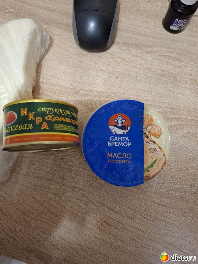 Как писала вчера в комментах Наташе - вместо селёдочного купила лососевое масло (67 руб.) и структурированную икру (119 руб.)