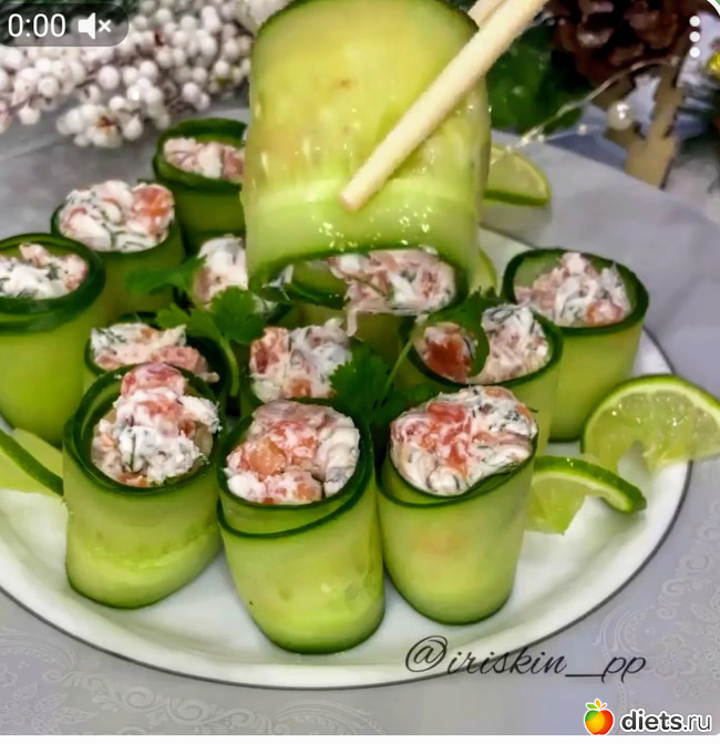 Diets.ru Рулетики с красной рыбой и огурцом
