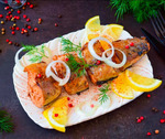 С помощью шумовки выловите рыбу и выложите её на бумажное полотенце. Удалите с рыбы луковую шелуху. Сбрызните скумбрию лимонным соком.