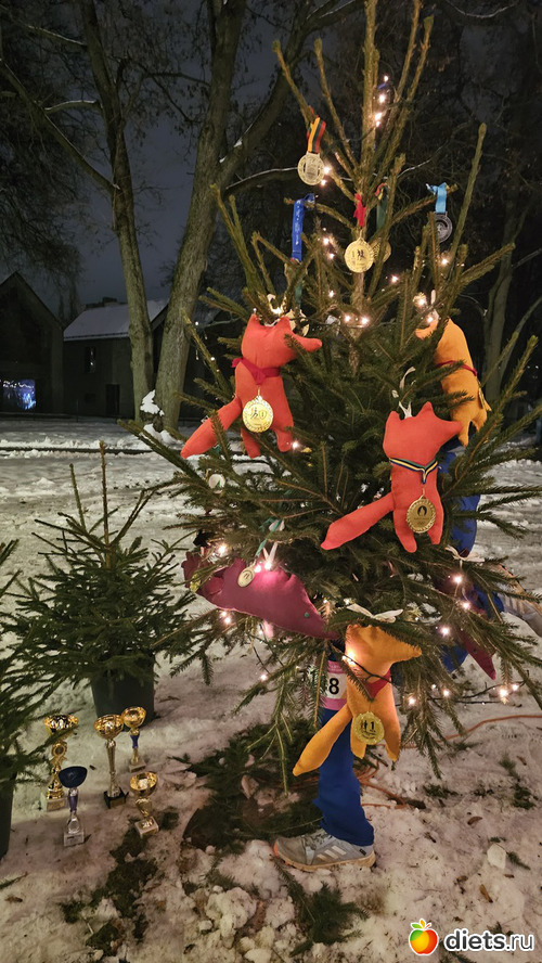 Елка-чемпионка, с медалями и кубками