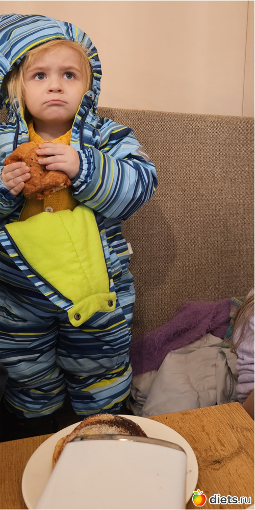 Малышок в булочной как будто недоволен. Не ту булку купили?