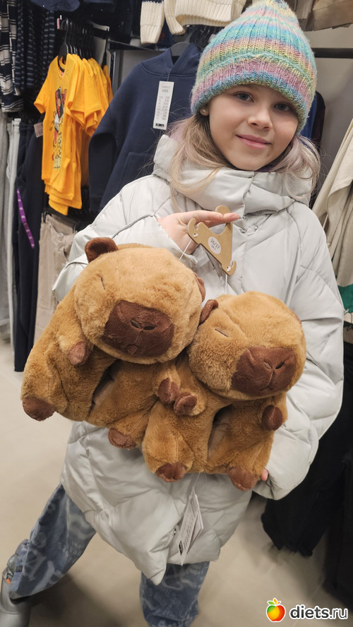 Дочка удовлетворила капибароманию, тапки и конструктор