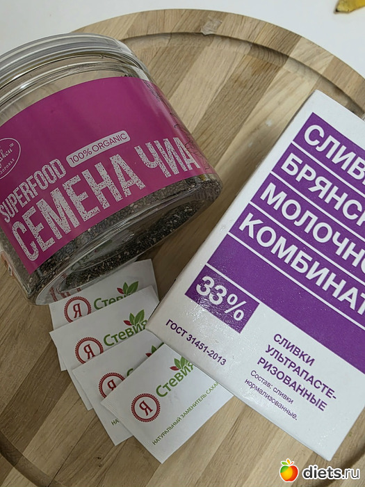 1. В банке смешайте сливки, семена чиа и стевию. Хорошо перемешайте и оставьте минимум на 1 час (можно на ночь в холодильник). Пока пудинг настаивается, вы спокойно можете приготовить основной ужин — многофункциональность! Периодически можно помешивать, чтобы не было комков, но я этого не делаю, меня все устраивает)