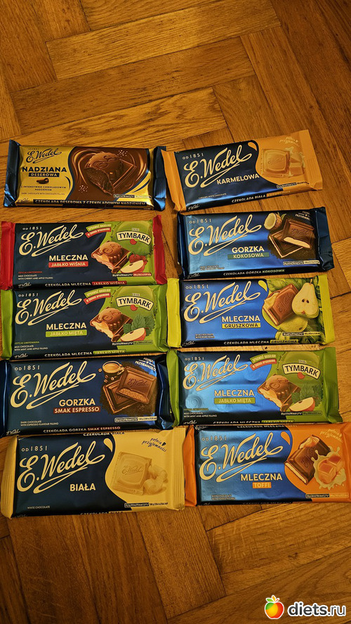 Шоколадки. Некоторые очень интересные: мята и яблоко, кокос, яблоко и вишня, эспрессо, груша и тп
