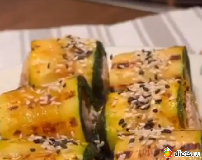 На край цукини выкладываем начинку и скручиваем ролл швом вниз.