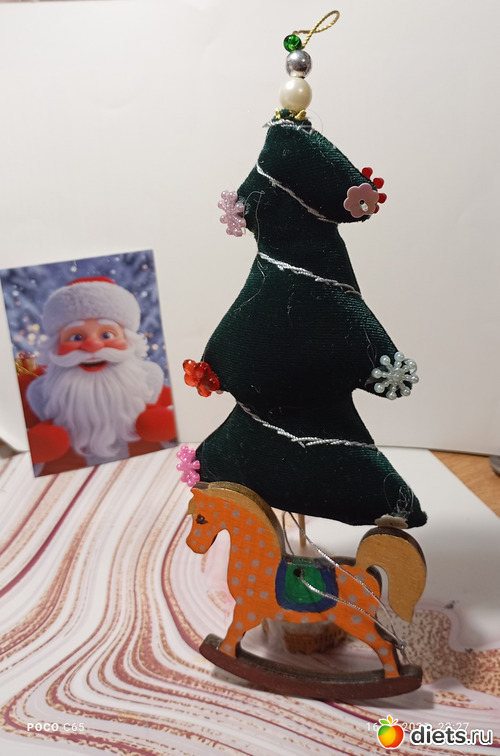 Вечером под сериал занималась подарком дирика. Основание покрыла лаком и ёлку на него насадила. Кривоватая ну да ладно.