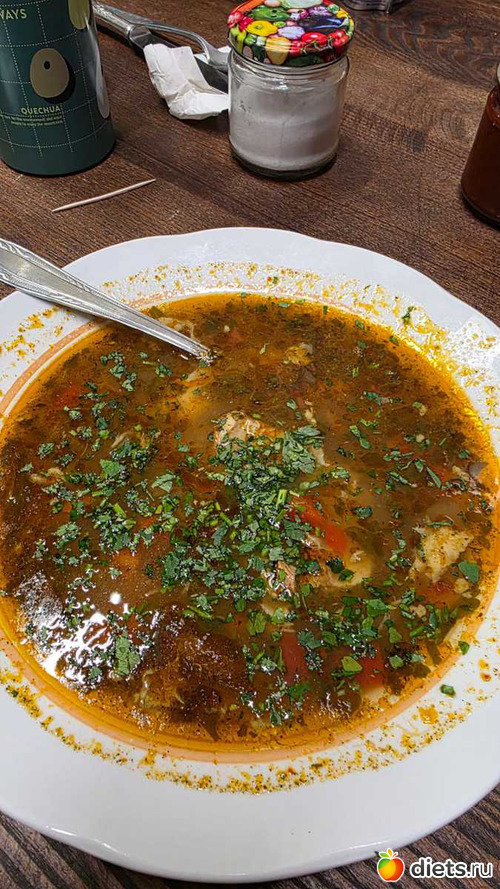 Себе я брала харчо. Вкусно очень. Маме к хинкалям хотелось мацони. Мацони не было.