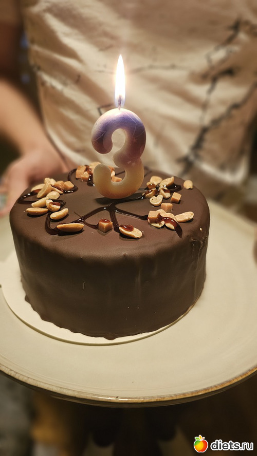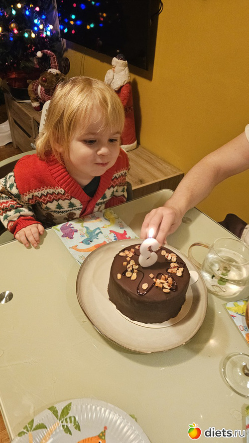 Вернулись домой, последний пункт: торт, задувание свечки и тост с б/а игристым вином.