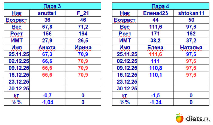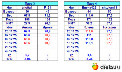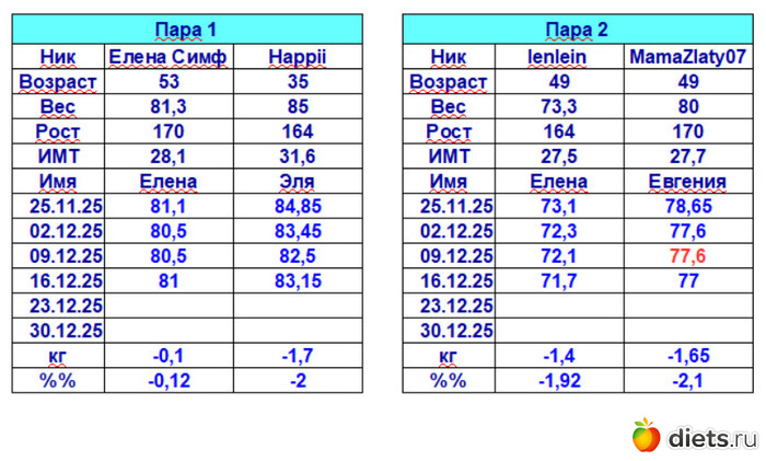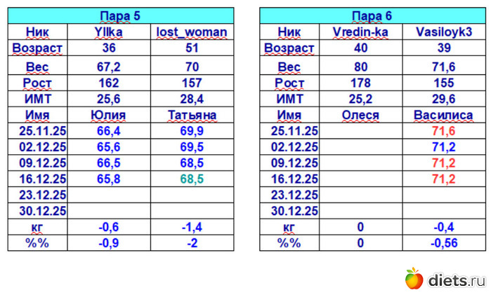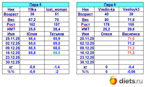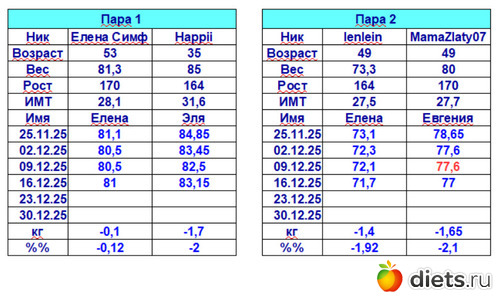Diets.ru 105-я дуэль! Пятое взвешивание (23-29 декабря). Дамы, к барьеру!