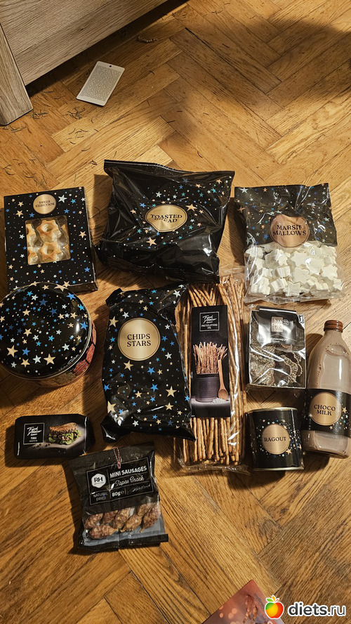 Содержание. Тут печенье, конфеты, крекеры, тунец, зефир, шоколадное молоко и тп