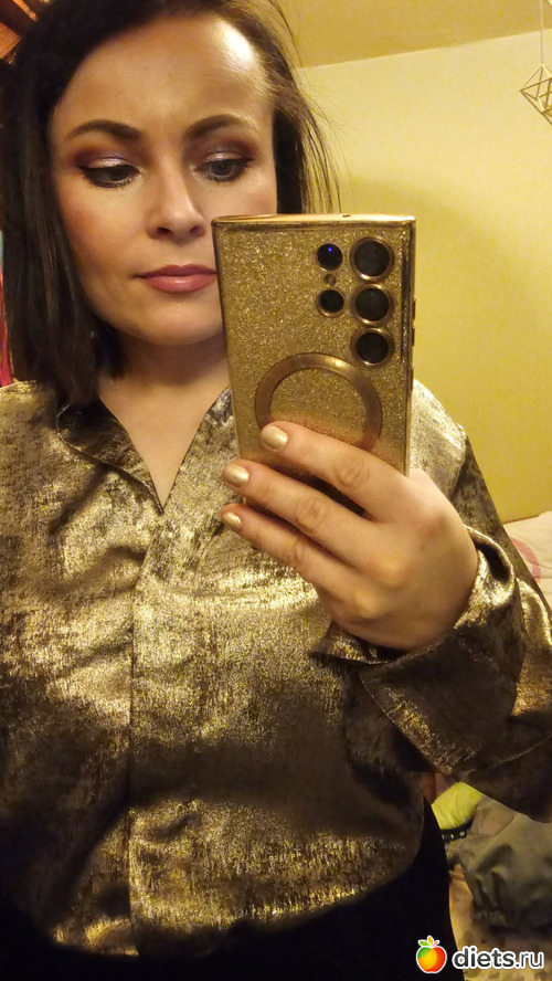 Классный у тебя образ в золоте на праздник, даже чехол в тему