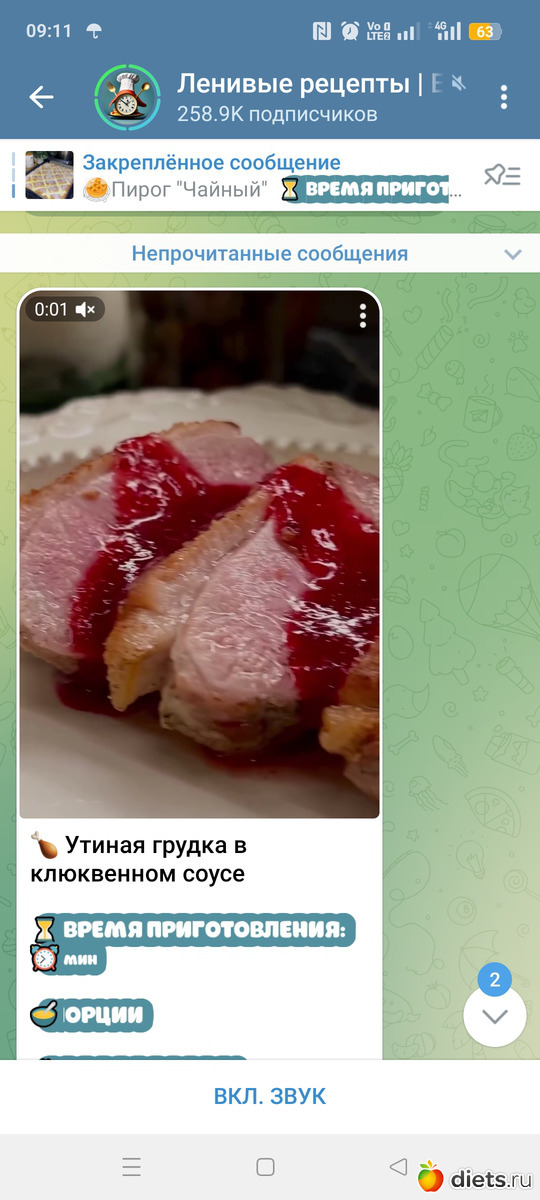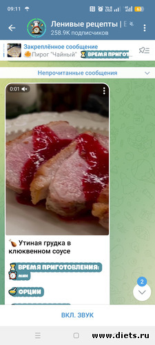 Утиная грудка в клюквенном соусе Утиная грудка – 1 шт.