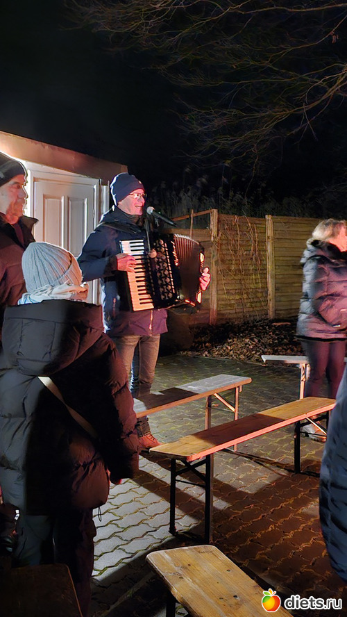 По программе в этот вечер было запекание колбасок на костре на берегу озера под песни аккордеониста. Конечно такое мы пропустить не могли