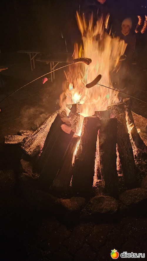 По программе в этот вечер было запекание колбасок на костре на берегу озера под песни аккордеониста. Конечно такое мы пропустить не могли