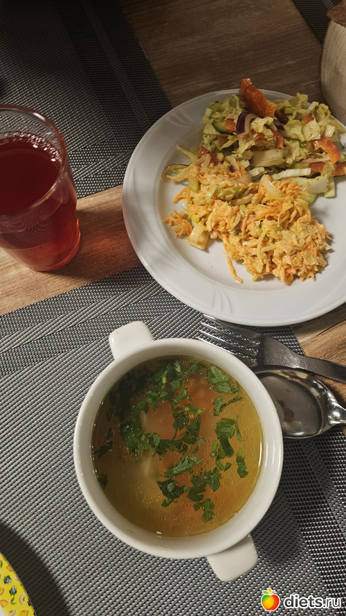 Бульон с лапшой, салаты