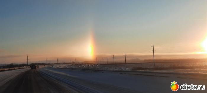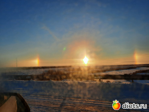 После активного отдыха, поехали обедать домой, какой же всё-таки был вкусный гусь!!! а потом уже и восвояси собрались. Молодёжь с нами поехала, в город, их пригласили родственники в гости. Весело и быстро доехали, уже никакой пурги на дороге, хотя странное свечение было.