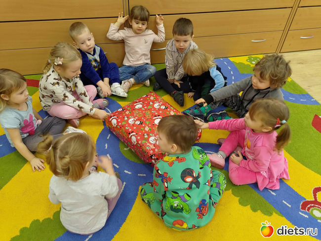 В садике дети тоже нашли общий подарок для группы - купленный родителями по заданию воспитательниц ковер