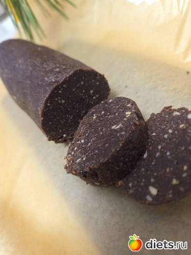 5. Формовка: Выложите массу на пищевую плёнку, сформируйте аккуратную «колбаску» диаметром 4-5 см и плотно заверните.