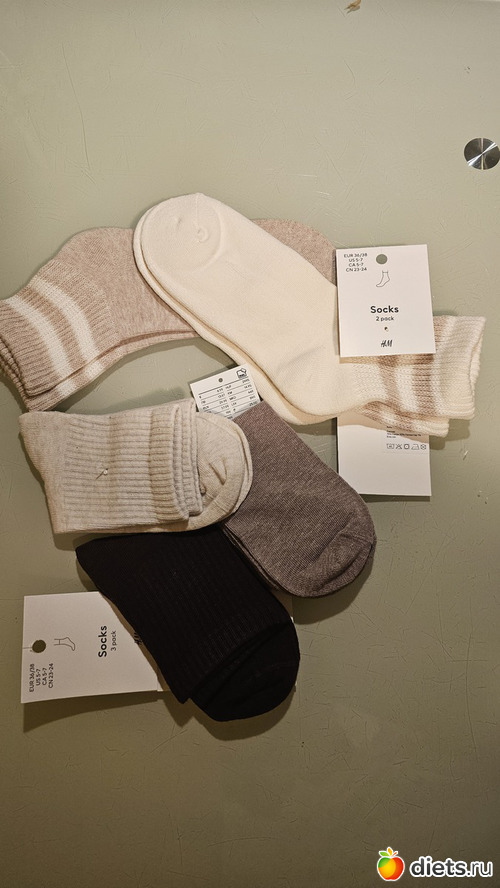 23. 24. 25. Три комплекта носков. H&M 6,3/7 и 4,5/5 евро, Lidl, 3.5 евро