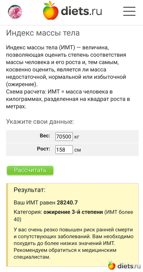 Как еще калькулятор ИМТ с ума там не сошел!!!!