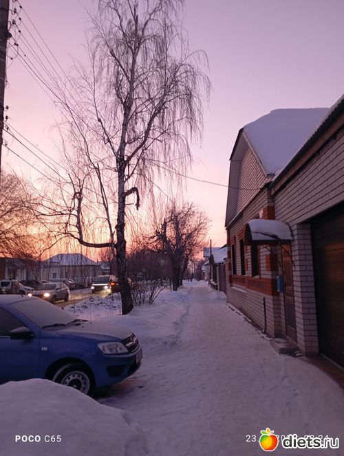 Погода чудесная: тихо, снежок искрится в свете фонарей и весело скрипит под каблуками, и щеки чуть пощипывает морозом, воздух прозрачен и розов восток, -25, но хорошо!!! С удовольствием слегка прогулялась до работы.