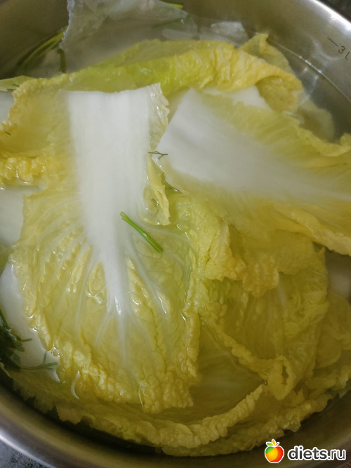 Листья подварила по совету из нэта и от себя добавила в воду корешки укропа и петрушки, для улучшения запаха, мягкие завертывать удобнее.