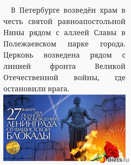 В часовне же я и узнала, что имя святой Нины- тесно связано с днём снятия Блокады - конечно мне стыдно, что это явилось для меня открытием-