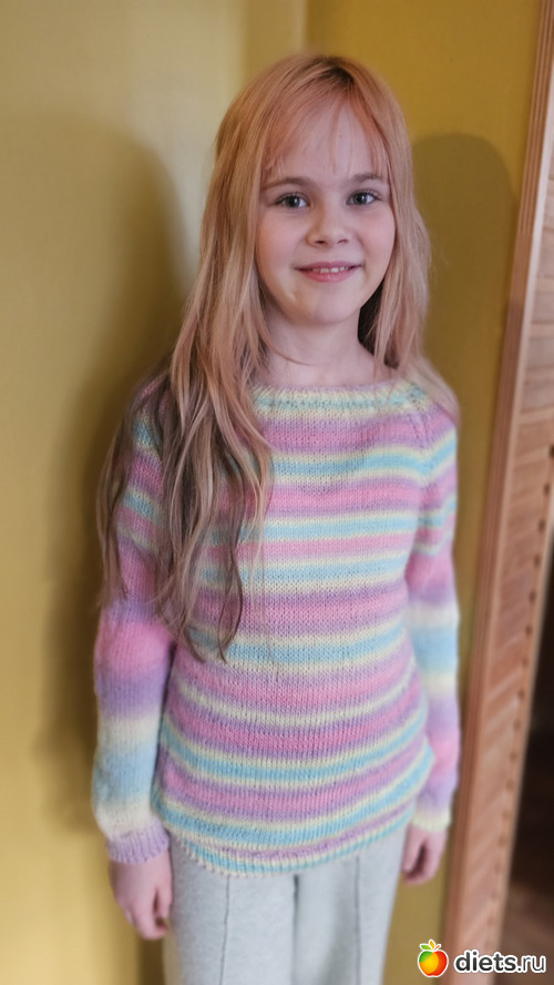 Свитер дочки очень нежный, как раз для девочек. И твоя расцветка тоже очень красивая.