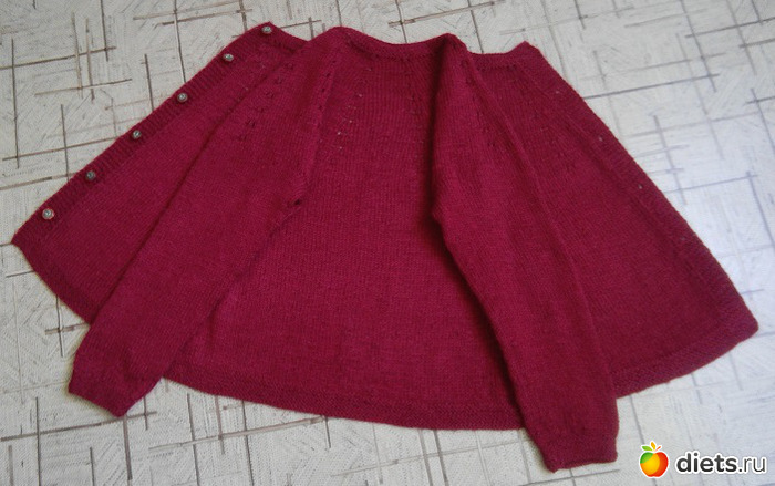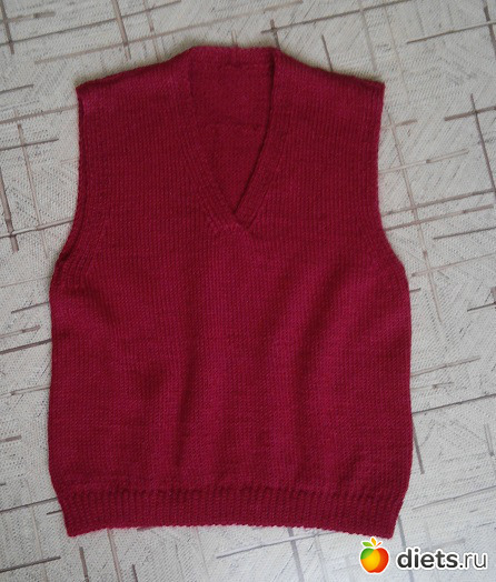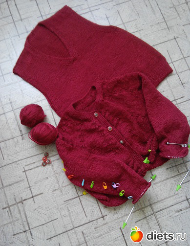 Пряжи было достаточно, хватило и на жилет. Причем, жилет связался быстрее кофты.