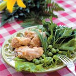 Луковицу почистите, помойте и мелко порубите. В глубокой кастрюле на сливочном масле (50 г) спассеруйте лук. Курицу помойте (если нужно) и порционно порежьте. В небольшую тарелку просейте муку и обмакните в ней куски курицы. В большой сковороде разогрейте 50 г сливочного масла и в несколько приемов на сильном огне обжарьте курицу. Курица должна зарумяниться.