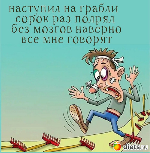 Да и чему радоваться. Грабли обсмеёшь- тут же какой-нибудь бесплатный сыр вляпаешься или дрова наломаешь, совсем в хозяйстве ненужного. Мы такие ребята, живем весело.