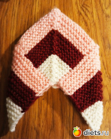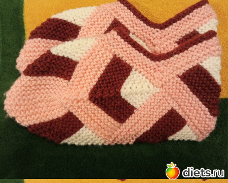 Только учти, если у тебя будет больше петель, то и ширина полос увеличится, ну, на образце увидишь, сколько рядов каждым цветом вязать