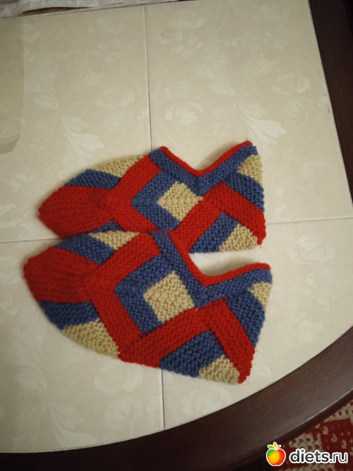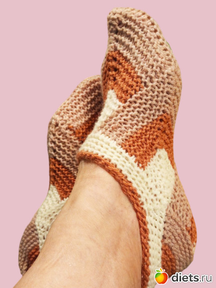 Предлагаю всем вместе связать такие тапочки. Мастеркласс есть на Ютубе, но не все могут туда зайти.