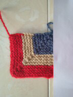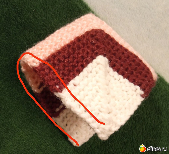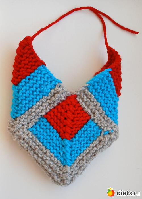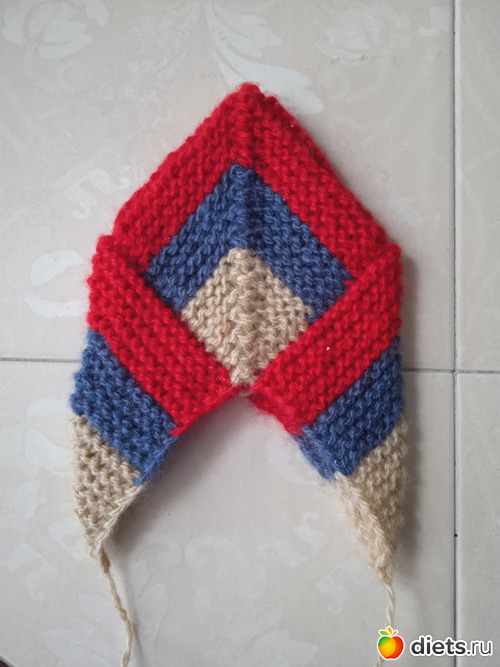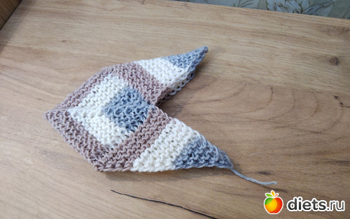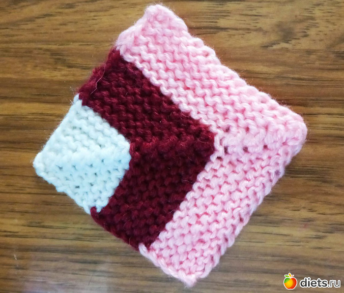 И дальше вяжем точно такой же квадратик, с теми же убавками и сменой цвета.