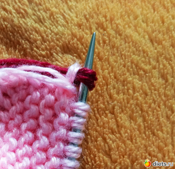 Далее вяжем вторым цветом (кончики нитей можно связать):