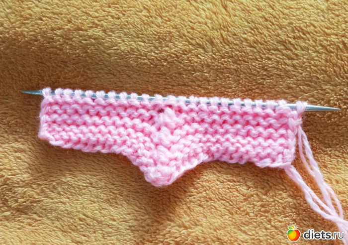 Начинаем вязать с семи петель, оставшихся на спице.