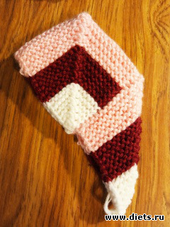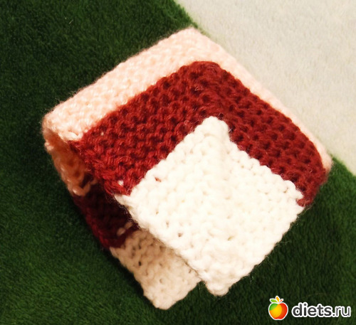 Только учти, если у тебя будет больше петель, то и ширина полос увеличится, ну, на образце увидишь, сколько рядов каждым цветом вязать