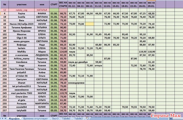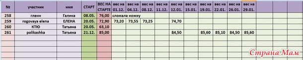 Мой отчёт: №4, Фаина, вес 66,75, отвес 1,75 кг. Уф, еще немного осталось до 66, а там я хочу уже 65 достичь.