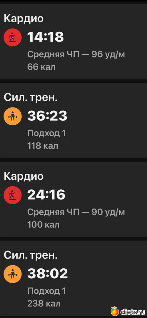 Каждый скрин - это одна тренировка. На каждую уходит два часа.