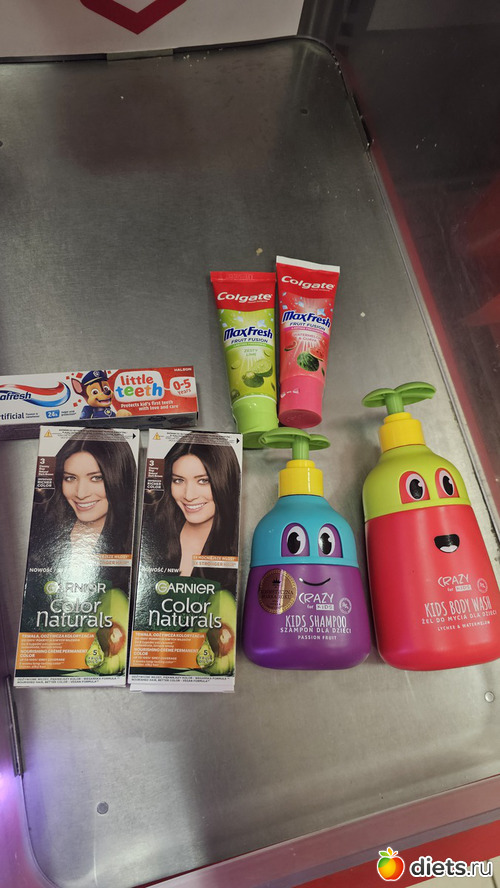 Скромный улов - зубные пасты детская и взрослые, краска для волос мне, детские шампунь и гель для душа. Выбора декоративной и уходовой косметики в супермаркете нет