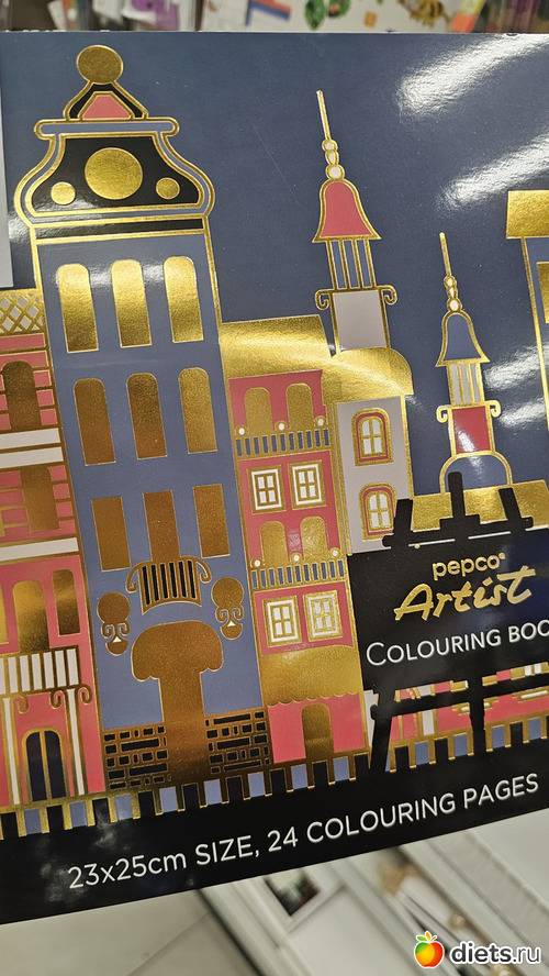 Необычная раскраска - внутри все листы с золотыми трафаретами