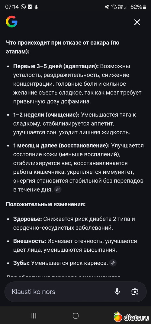 Особо результата и не ждала, у меня уже был опыт, когда я надолго, более, чем на полгода, отказывалась от сахара, ни один кг не ушел