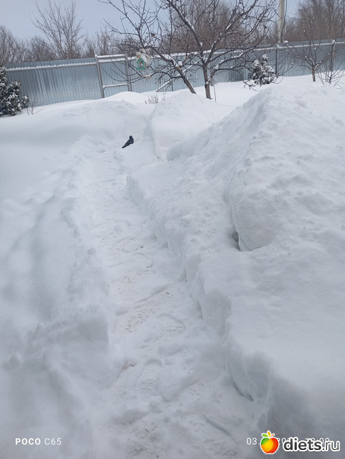 Дома прочистила тропку к кормушкам, два голубя топтались по саду в нетерпении. Синицы откуда-то из засады подсматривали, только ушла, засыпав всё семок - налетели весёлой стаей. Пируют