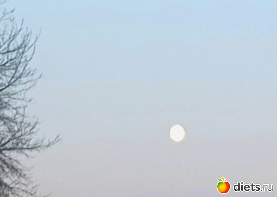 Морозное зимнее утро, -26. В небе и луна висит почти полная, а с другой стороны солнца восход