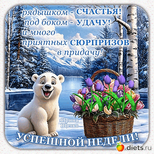 Хорошей недели,всех благ тебе и твоим родненьким!
