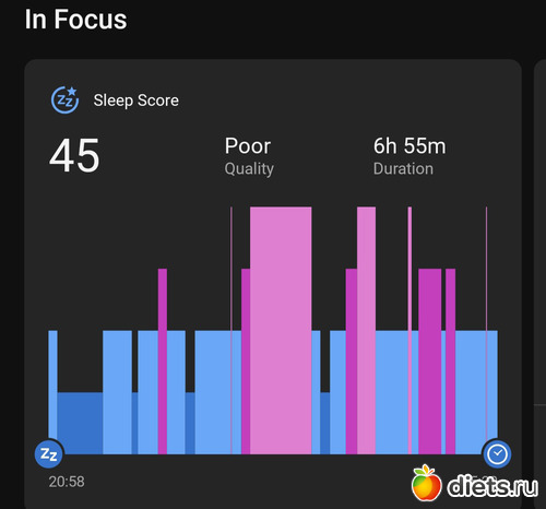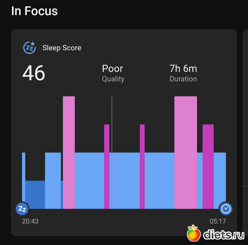 У меня сегодня качество сна похуже, много ворочалась, спала беспокойно.
