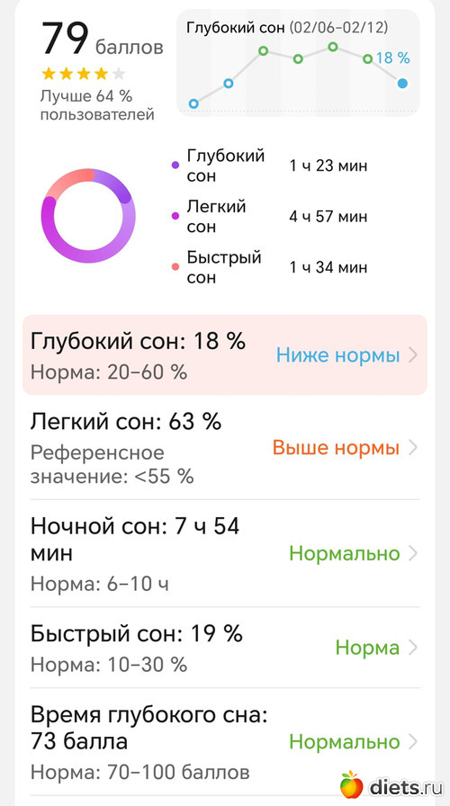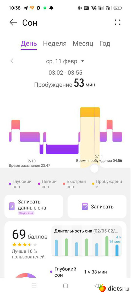 Одно утешает, глубокий сон 38 %, а 16% пользователей приложения спали хуже меня. Так что мне еще повезло.