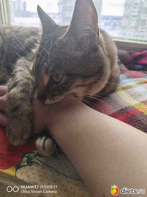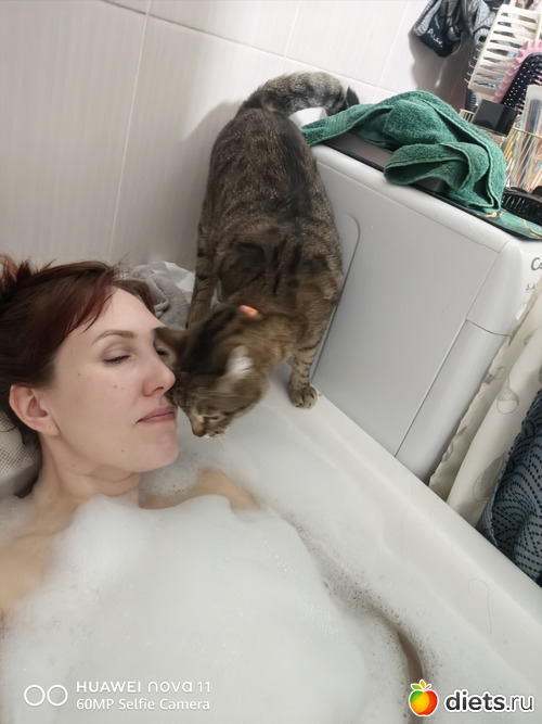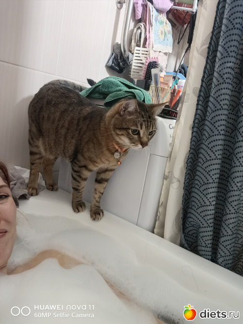 Проконтролировали, чтобы кожаная в ванне не утопла. А то вообще-то кормёжка тоже была, поэтому я ценный кадр в глазах кота