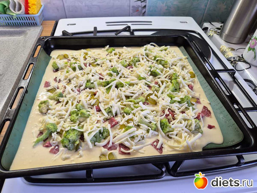 Я сделала с салями, брокколи, солеными огурчиками и сыром. Ммммм